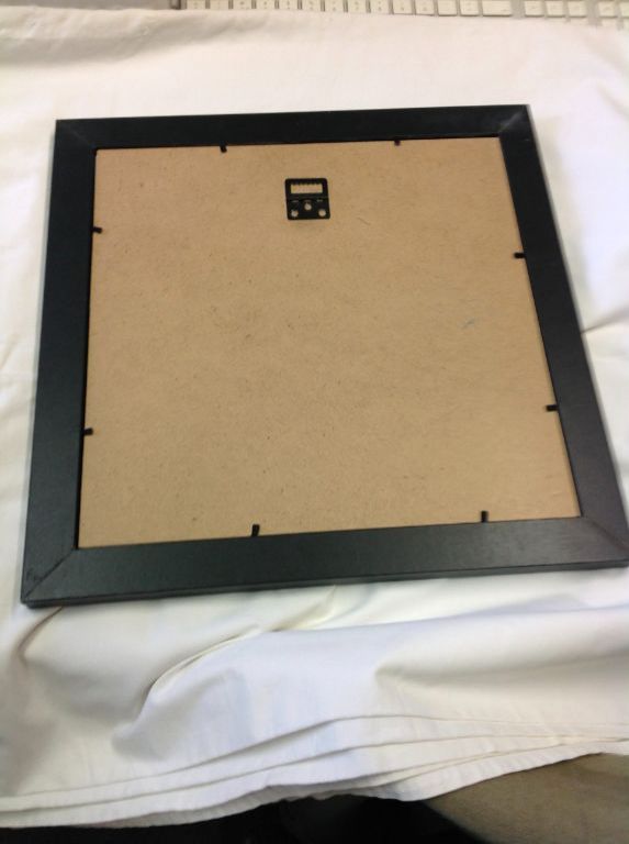 Formaat uitwendig 35,5 x 35,5 x 2 cm. Inwendig (gezien van buiten) ca. 29 x 29 cm. Gewicht 1266 gram. Het geheel ziet er uit als nieuw, echter met uitzondering van een klein plekje rechtsboven, waar kennelijk tegen gestoten is. Verzendkosten vanaf € 5,45. Prijs € 12,50.