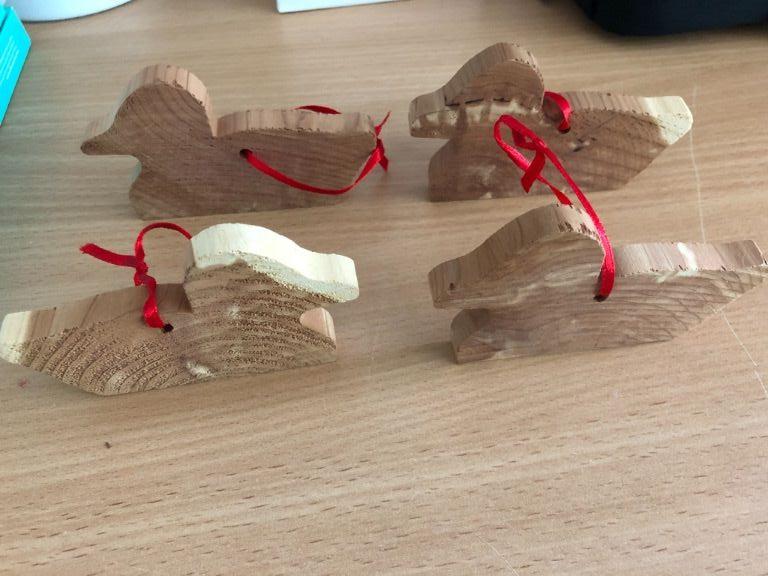 Verkoop 4 houten eenden tegelijkertijd .