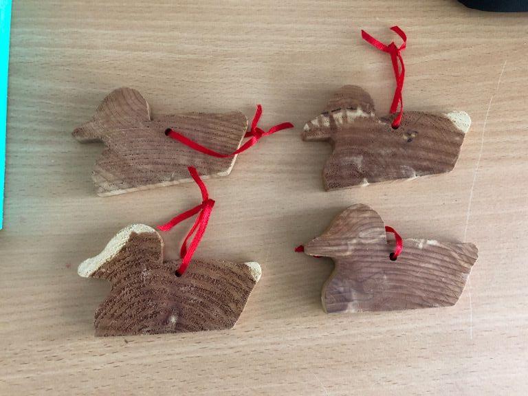 4 houten decoratie eendjes met lint . Eend anti mot