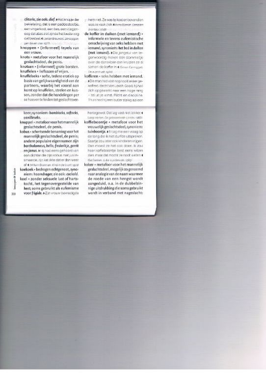 Uitg. van Dale. 2018. Gelijmd met katerntjes. Formaat 8,2 x 11,9 cm. 792 pagina's. Dikte 1,4 cm. Een boek met uitsluitend woorden en uitdrukkingen, die met seks te maken hebben. Nieuwstaat.