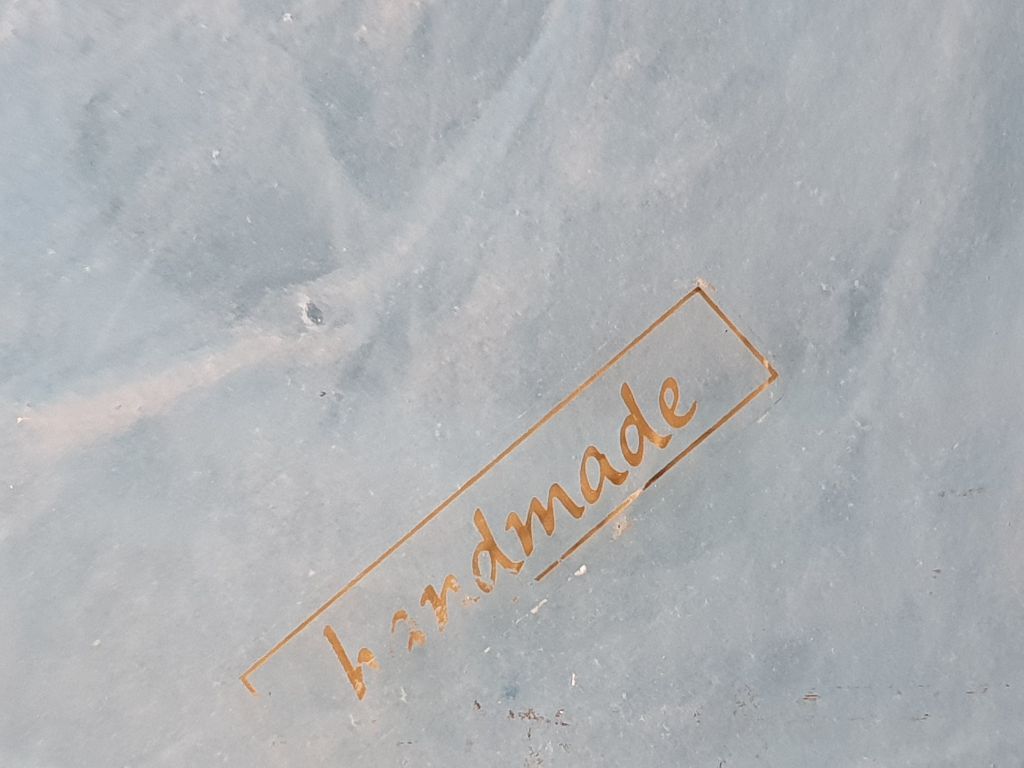 aan onderkant zit een sticker met "handmade" en een