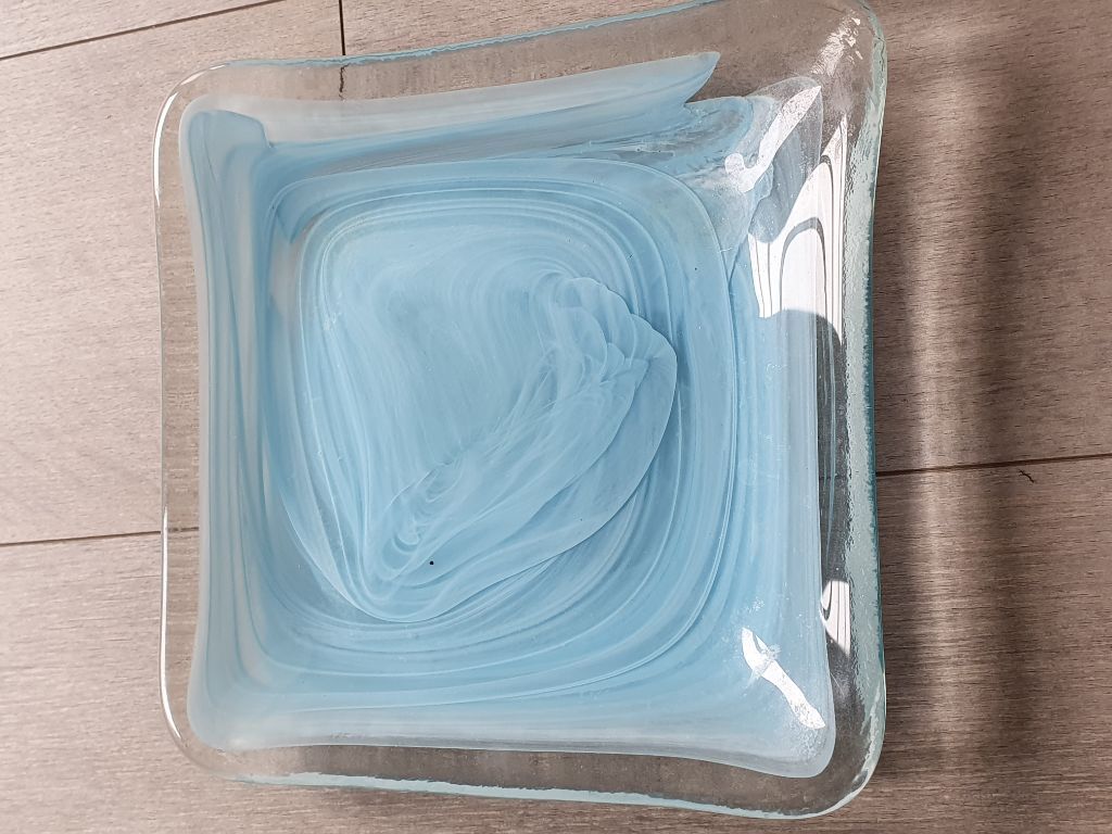 dikte van het glas ca 1 cm, het is een zware schaal